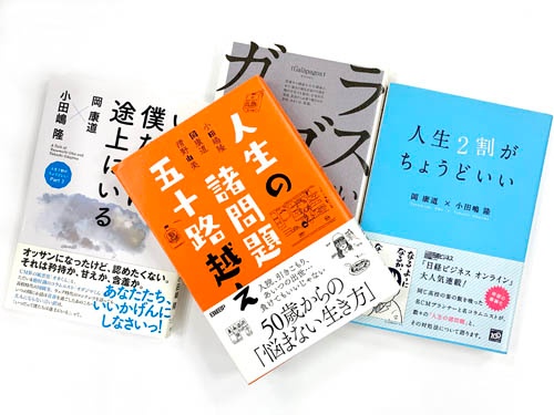 そんなこんなで、あきれたり、笑ったり、怒ったりしながら、いつの間にか干支がひと回り以上。昨年7月に刊行された対談集第4弾『人生の諸問題 五十路越え』の「おわりに」に、岡はこう書いた。